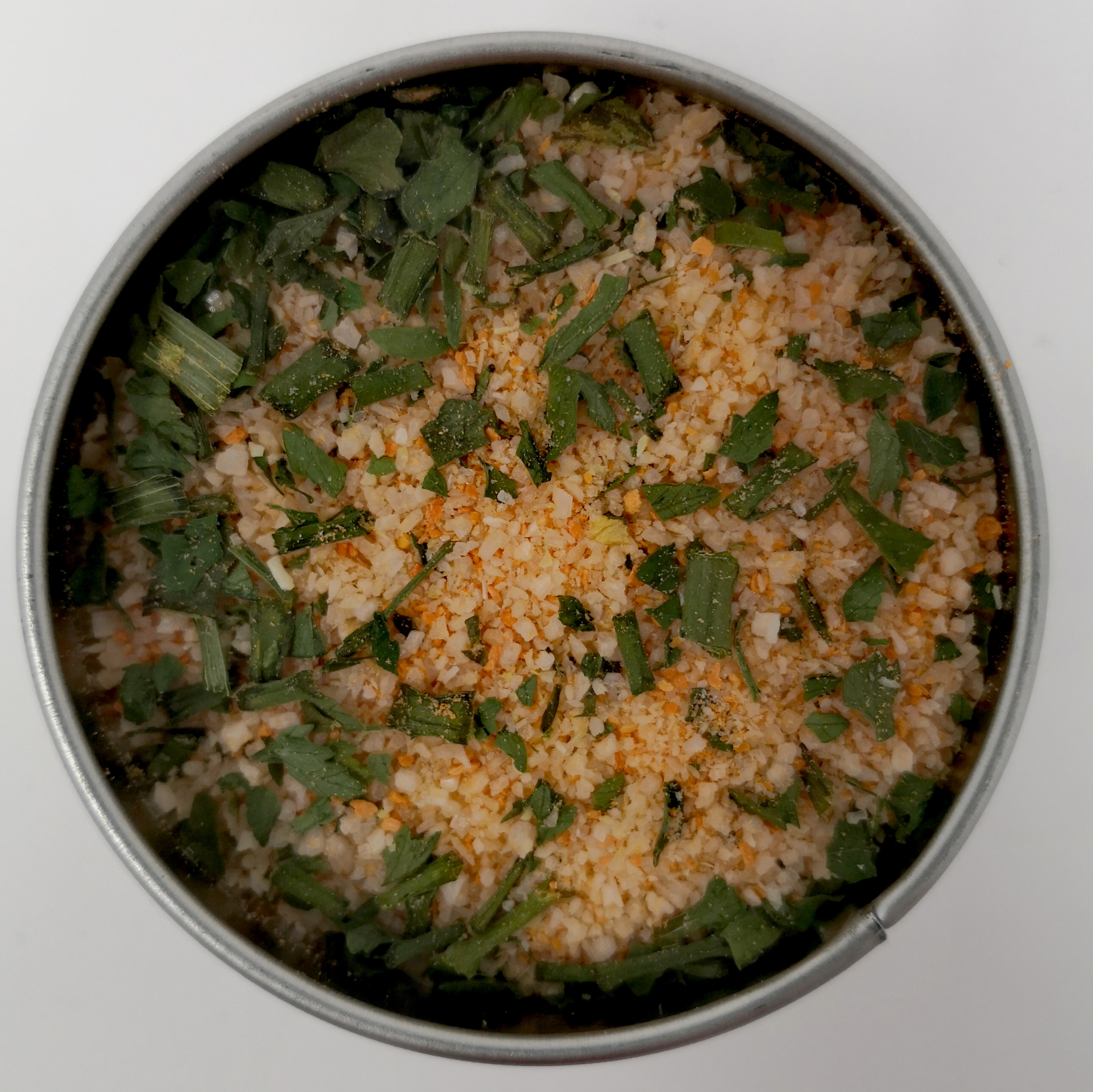 Zutaten: Luisenhaller Tiefensalz, Möhren*, Zwiebel, Petersilie, Schnittlauch *aus kontrolliert biologischem Anbau Kann Spuren von Senf, Sesam und Sellerie enthalten.