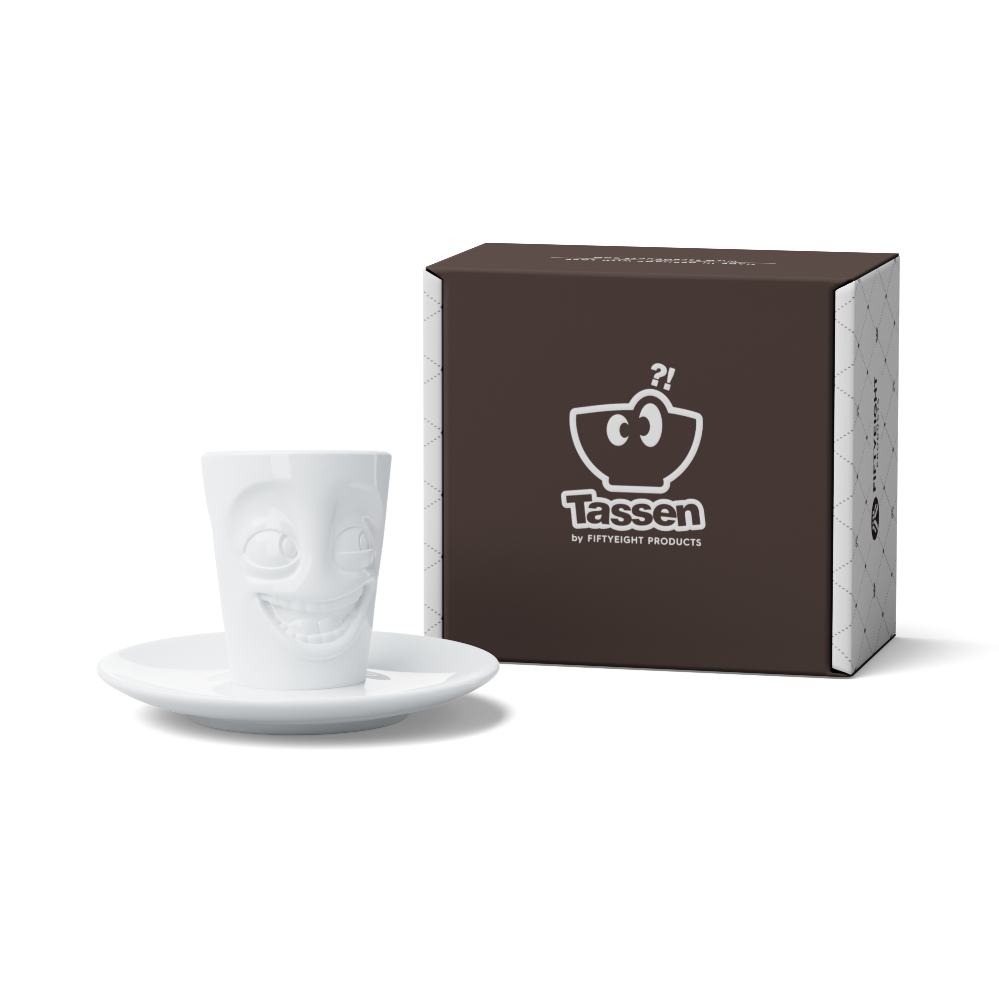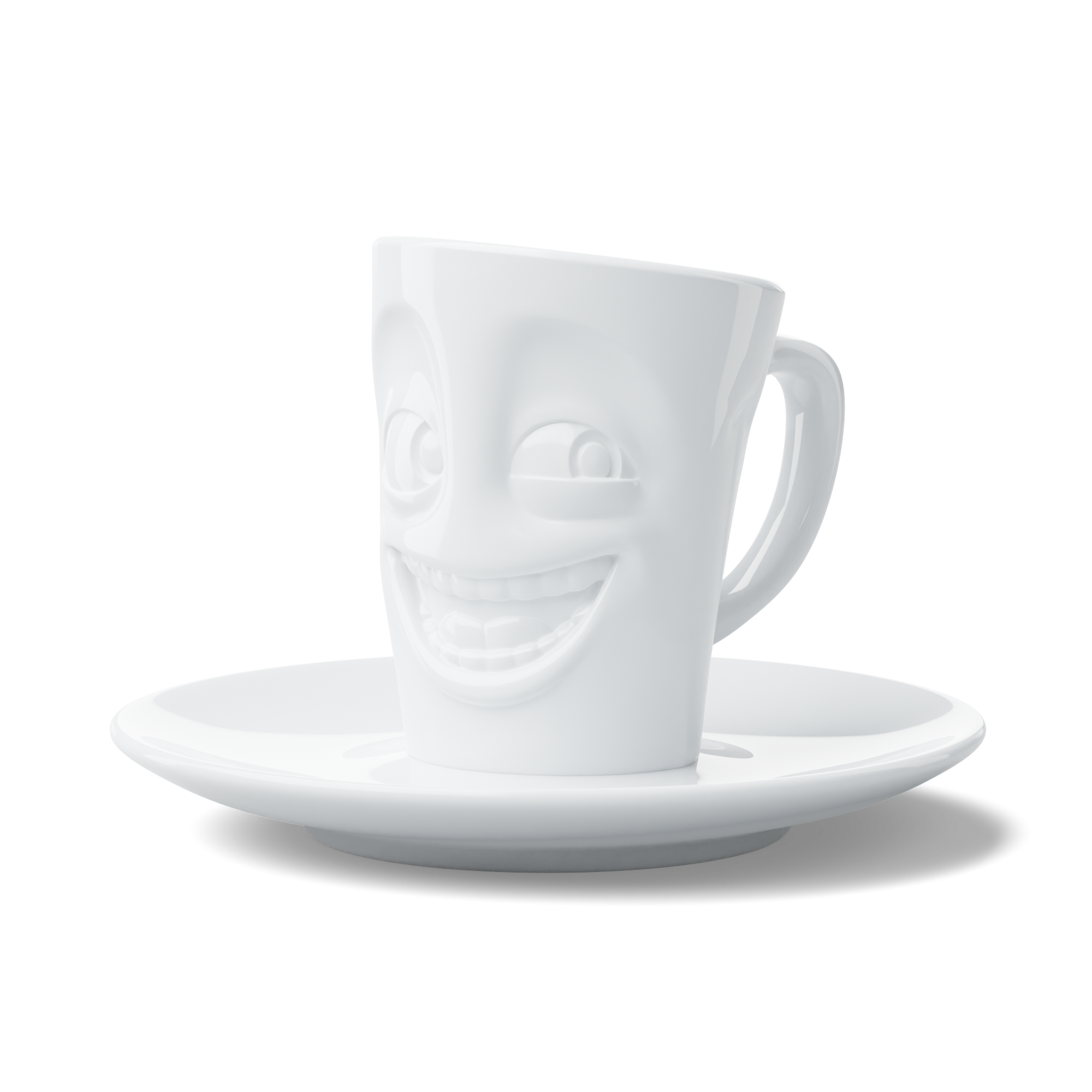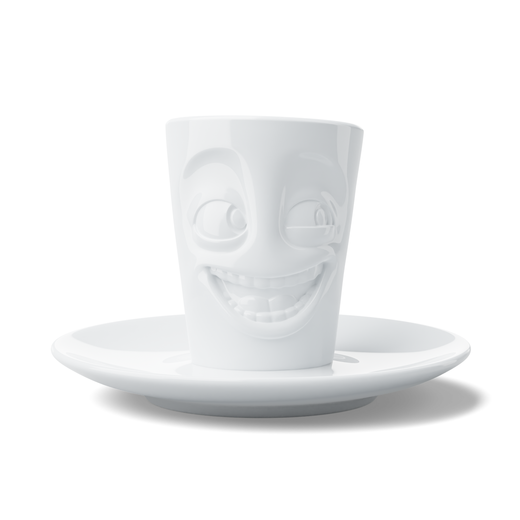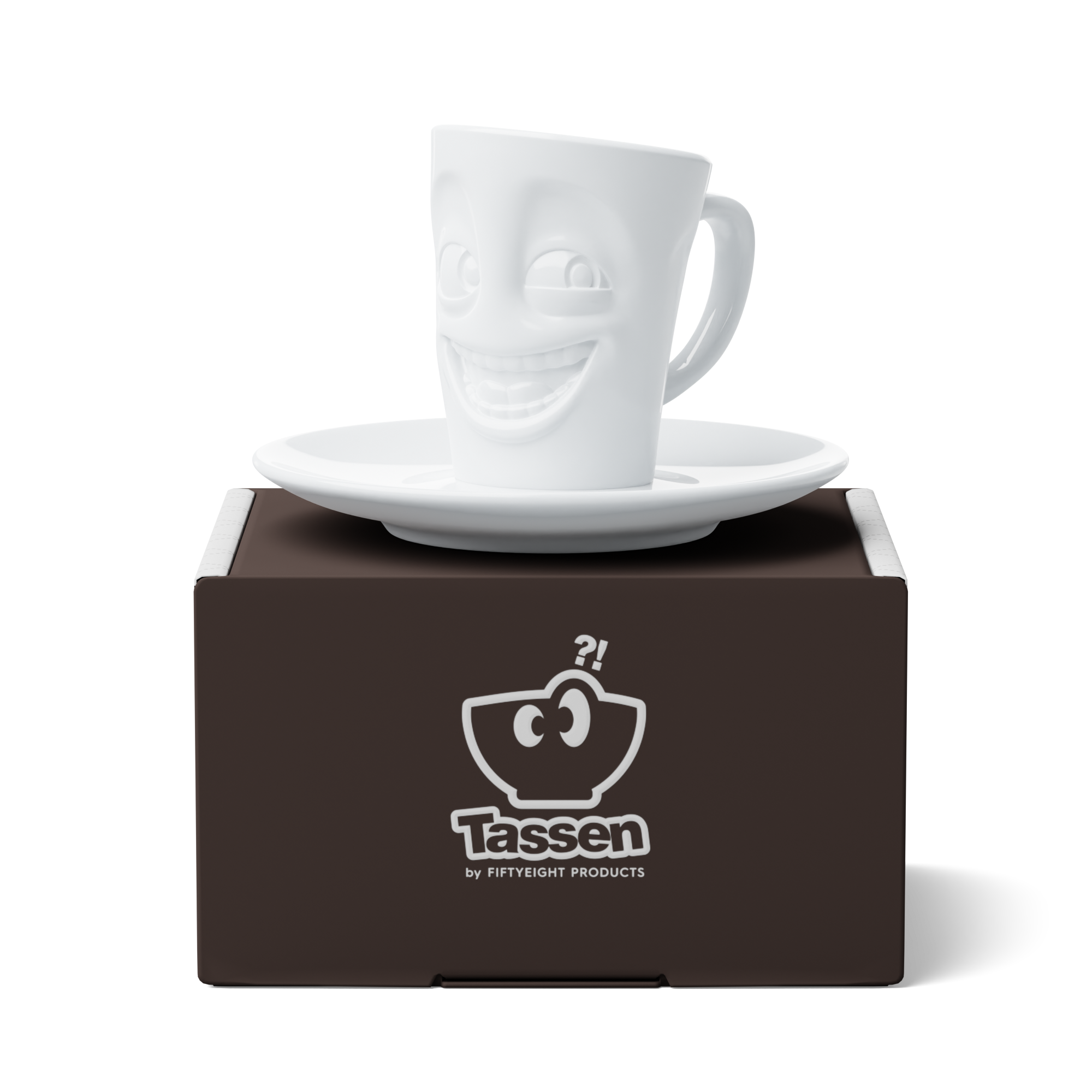 FiftyEight witziger Espresso Mug in Weiss. Mit Henkel und Unterteller - groß genug für einen Espresso Macchiato.