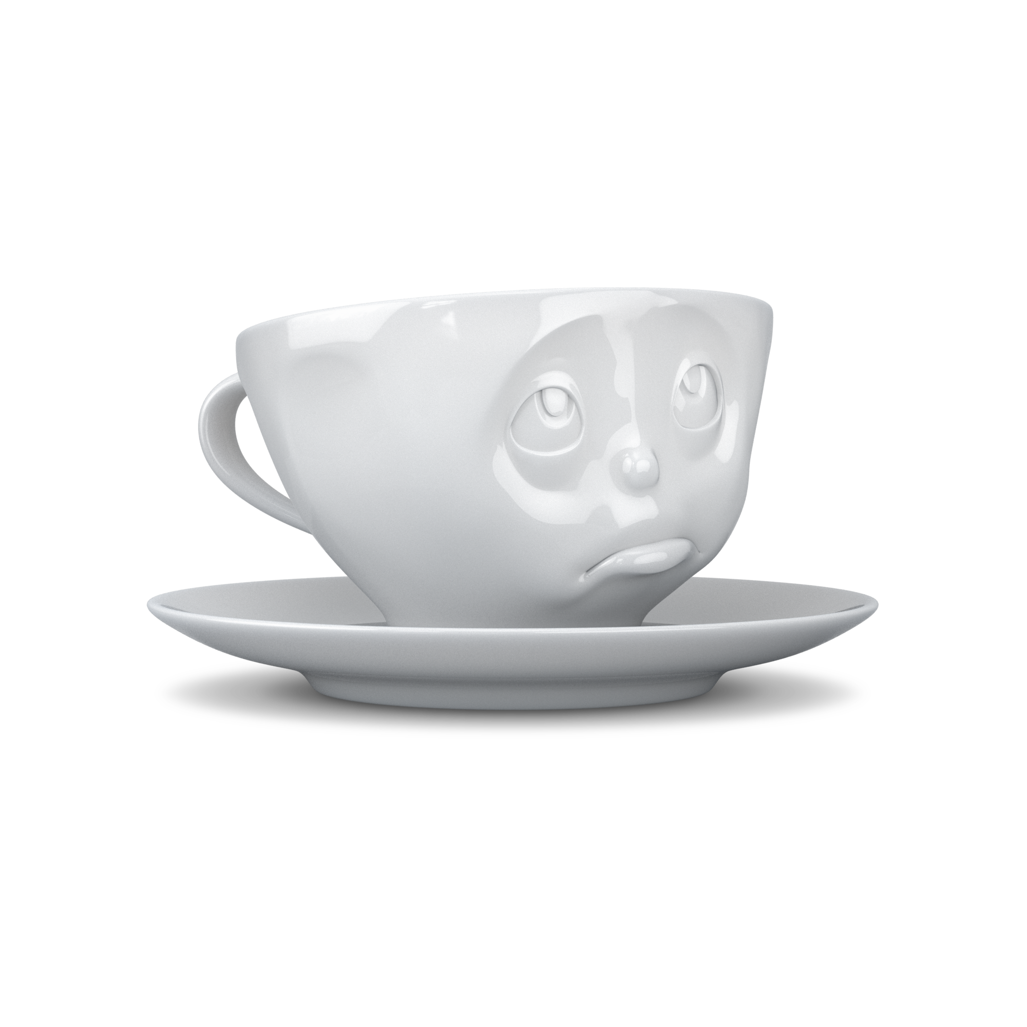 FiftyEight Och Bitte Tasse in Weiss. Mit Henkel und Unterteller - für eine große Tasse Kaffee, Tee oder Kakao.