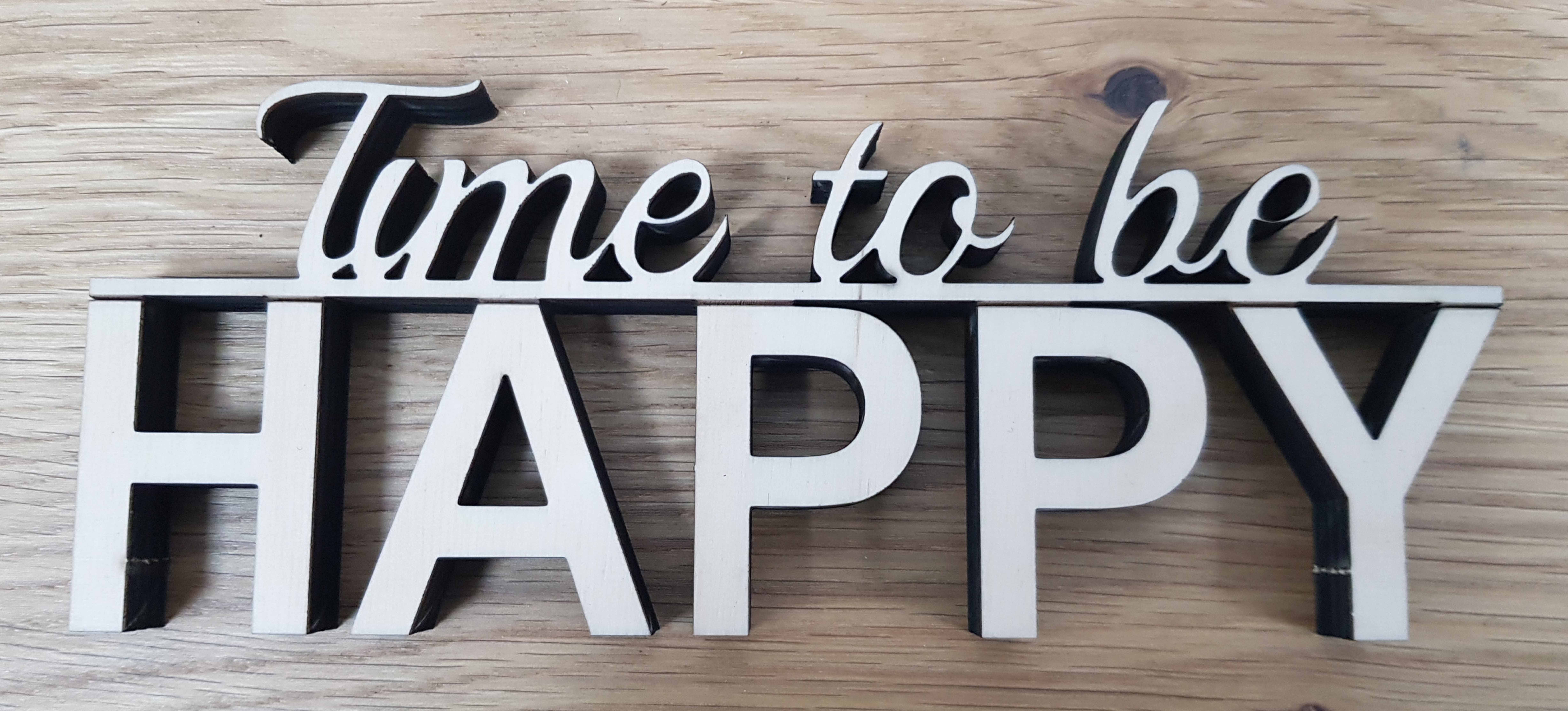 Holz Dekoschrift "TIME TO BE HAPPY" Größe ca. 18 cm x 7,0 cm Material: hochwertiges Birkenmultiplex Verarbeitung: Oberfläche matt lasiert,, Kanten leichte grau/schwarz Färbung - 3D Effekt MADE IN PFUNGSTADT