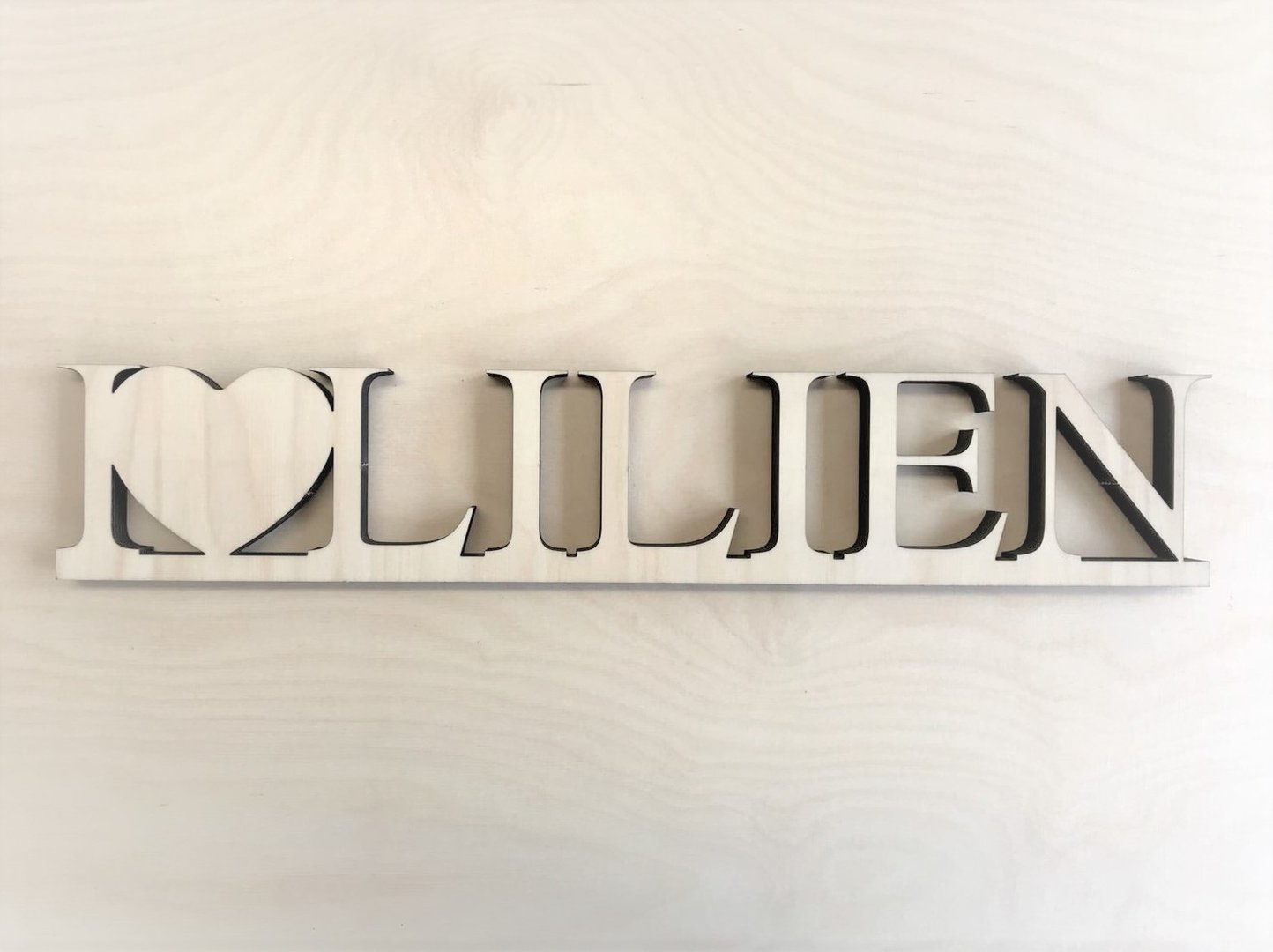Holz Schriftzug "I Love Lilien" Größe ca. 7,5 cm x 41 cm Material: hochwertiges Birkenmultiplex Verarbeitung: Oberfläche matt lasiert,, Kanten leichte grau/schwarz Färbung - 3D Effekt
