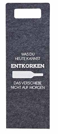 Eine schöne und stilvolle Geschenkverpackung für Wein- oder Proseccoflaschen. Die Geschenktasche ist mit dem Schriftzug "Was du heute kannst entkorken, das verschiebe nicht auf morgen." bedruckt und ist ein echter Hingucker. Geeignet ist die Geschenktasche für alle gängigen Wein- und Proseccoflaschen