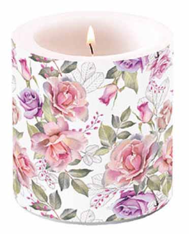Tischkerze mit Motiv Josephine Maße: Höhe ca. 9 cm / Durchmesser ca. 7,5 cm Material: Paraffin, weiß Brenndauer ± 35 Stunden