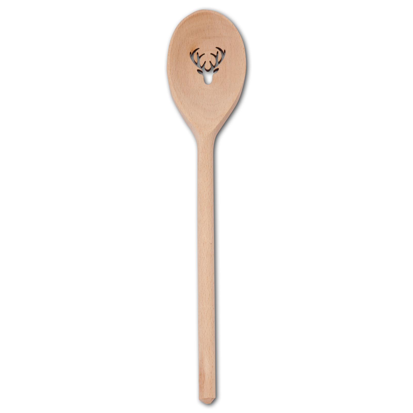 Kochlöffel mit ausgelasertem Hirsch aus Buchenholz - Hergestellt in Deutschland und in der EU Maße: Höhe ca. 30 cm Material: Buchenholz