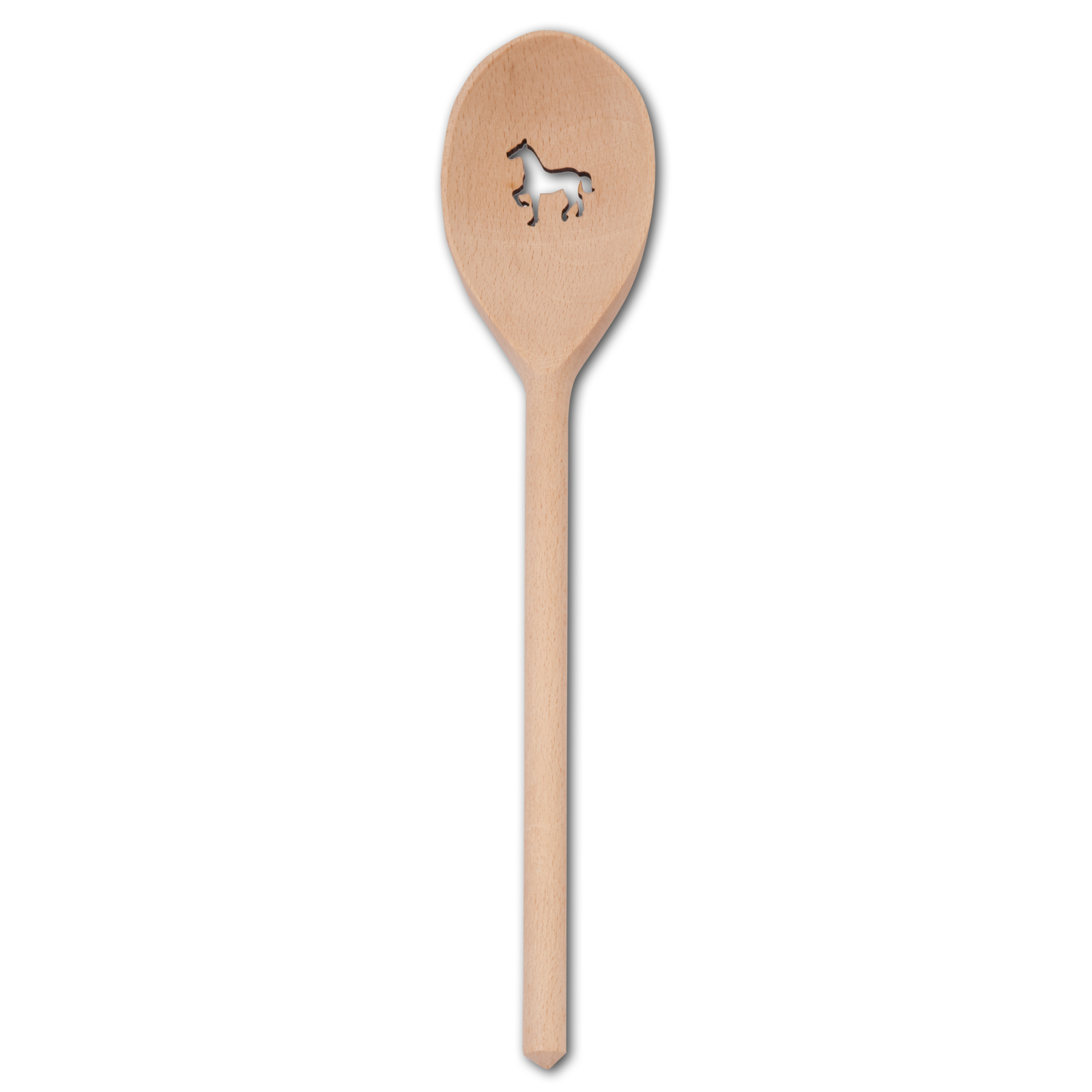 Kochlöffel mit ausgelasertem Pferd aus Buchenholz - Hergestellt in Deutschland und in der EU Maße: Höhe ca. 30 cm Material: Buchenholz
