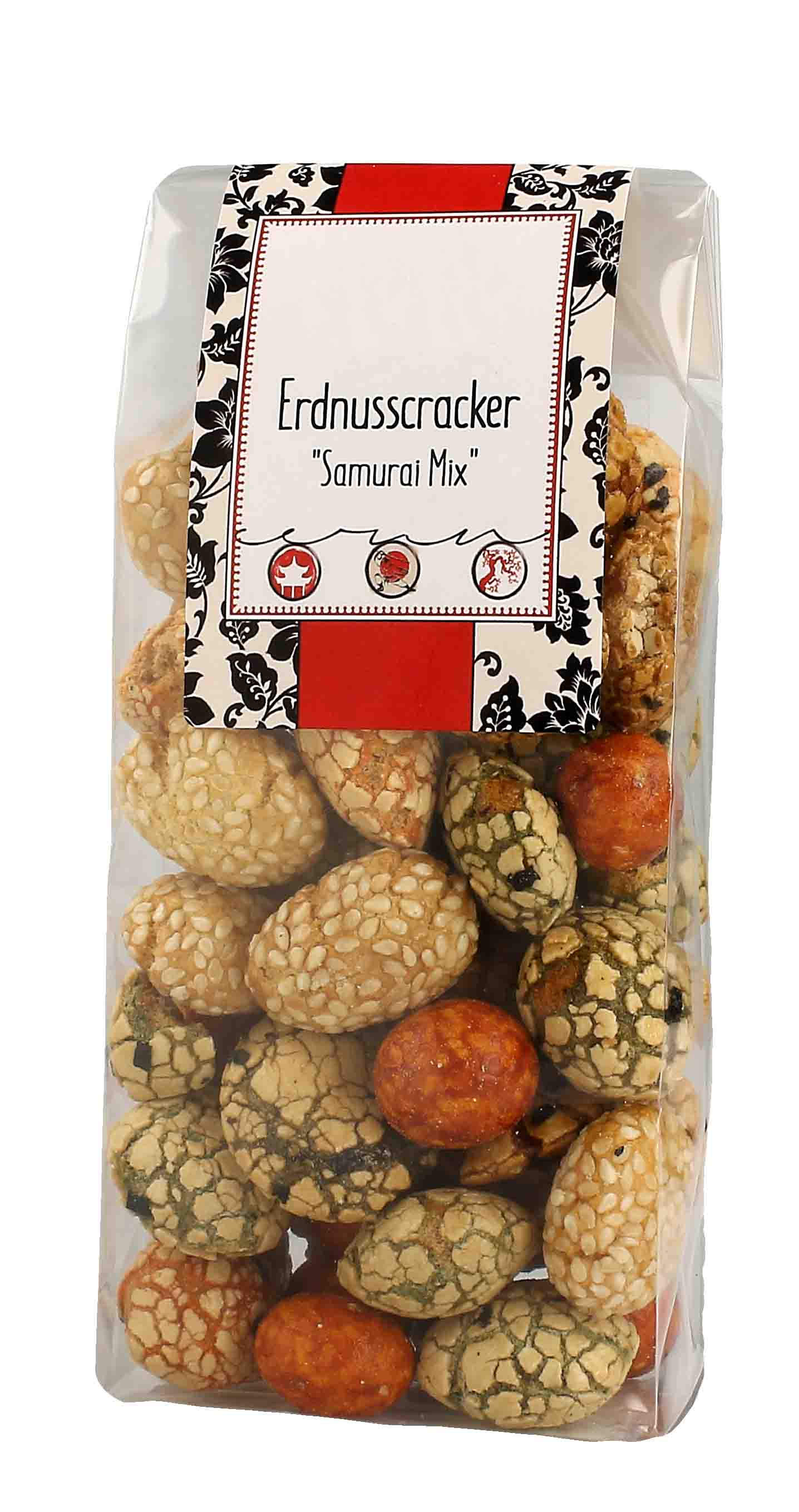 Zutaten: Maisstärke, 23% ERDNUSSkerne , WEIZENmehl (GLUTEN), Maissirup, Zucker, Maltodextrin, SESAMsamen, SOJASOßE (= Wasser, SOJAbohnen, Vollkorn WEIZENmehl (GLUTEN), Salz), Salz, Kartoffelstärke, Seetang, Farbstoffe ( E141 Kupferhaltige Komplexe der Chlorophylle, einfacher Zuckerkulör, Paprika-Extrakt), Säureregulator: E503 Ammoniumcarbonate. Kann Spuren von ERDNÜSSEN und NÜSSEN enthalten.