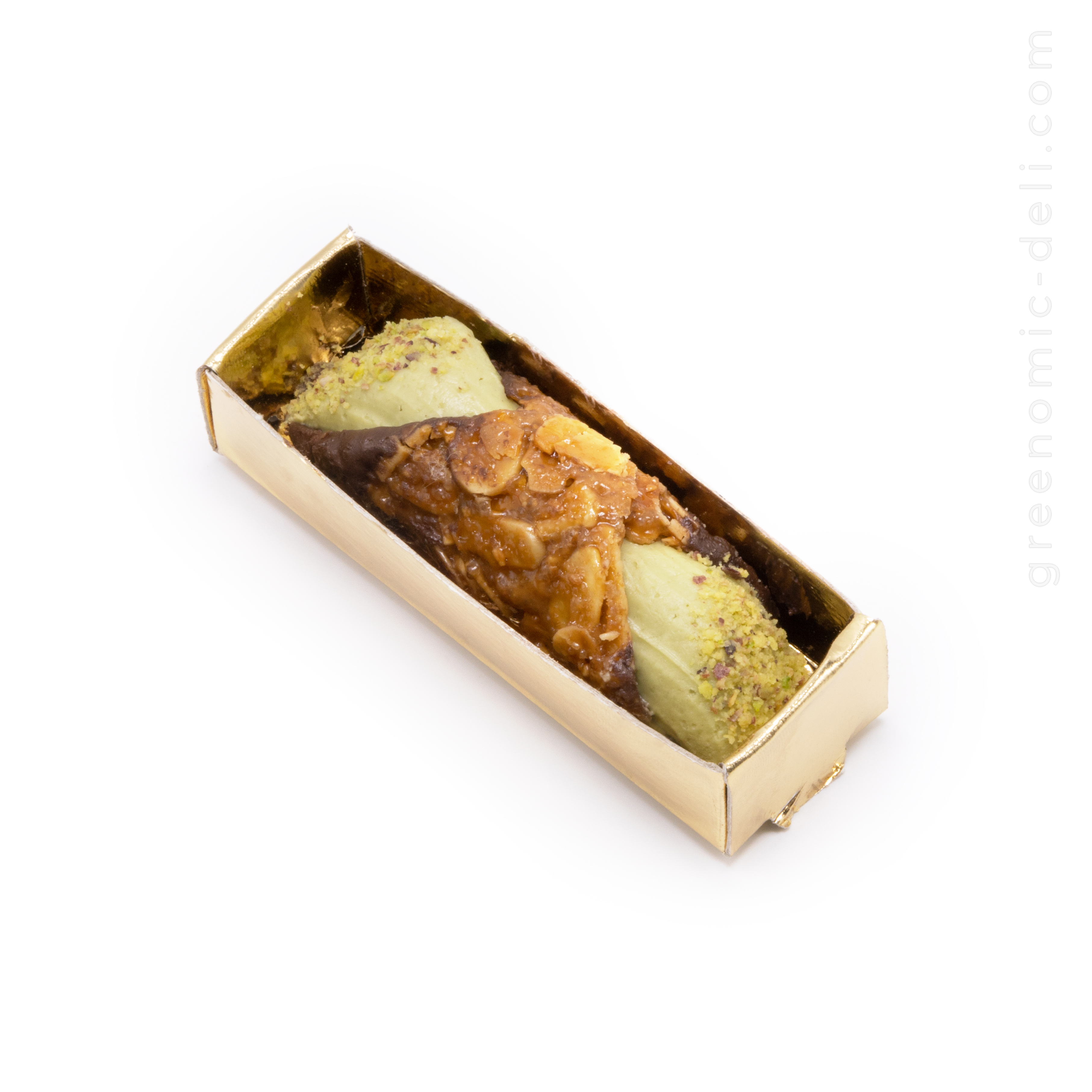 Zutaten: Cremfüllung: Pistaziencreme (52%) [Zucker, pflanzliches Fett (Sonnenblume, Palm)], MILCH, Kakaobutter, Maltodextrin, Aromen, Emulgator: Lecithin (SOJA) E322, PISTAZIENPASTE (4%) [geschälte PISTAZIEN, Salz, E141 natürlicher Farbstoff]. Teigröllchen: Glukosesirup, Zucker, MANDELN (32%), Palmfett, Dextrose, VOLLMILCHPULVER, Emulgator: Lecithin (SOJA) E322, Schokoladenüberzug (Zucker, gehärtetes Pflanzenfett (Palmkern), Magerkakaopulver, Emulgator: Lecithin (SOJA) E322 - E492, Aromen).