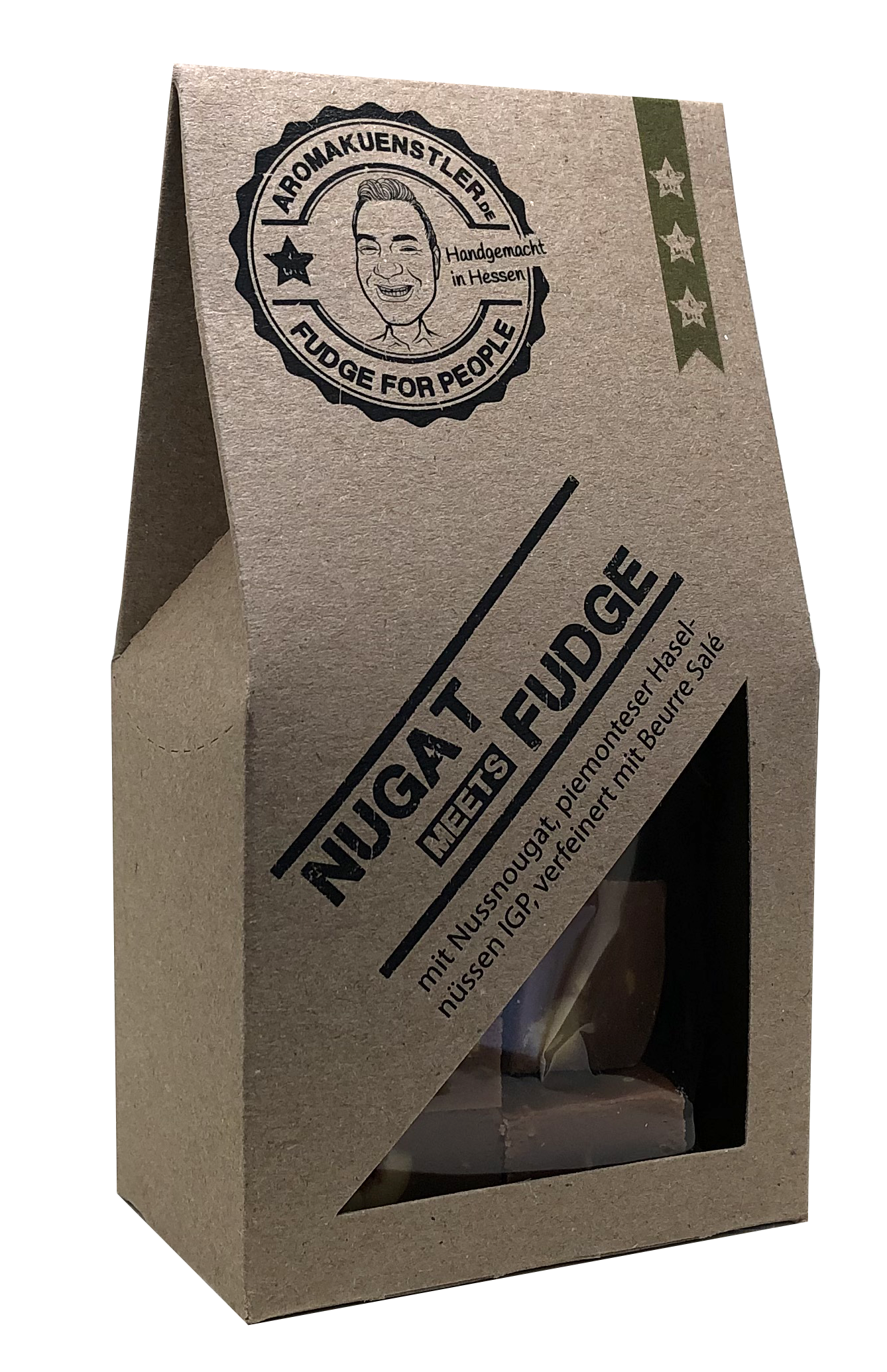 Zutaten: Rohrohrzucker, Sahne, Nussnougat (27%) (Rübenzucker, Hasselnusskerne, Kakaomasse, Magermilchpulver), Glukose, Hasselnüsse (12%), französische Salzbutter (3,8%).
