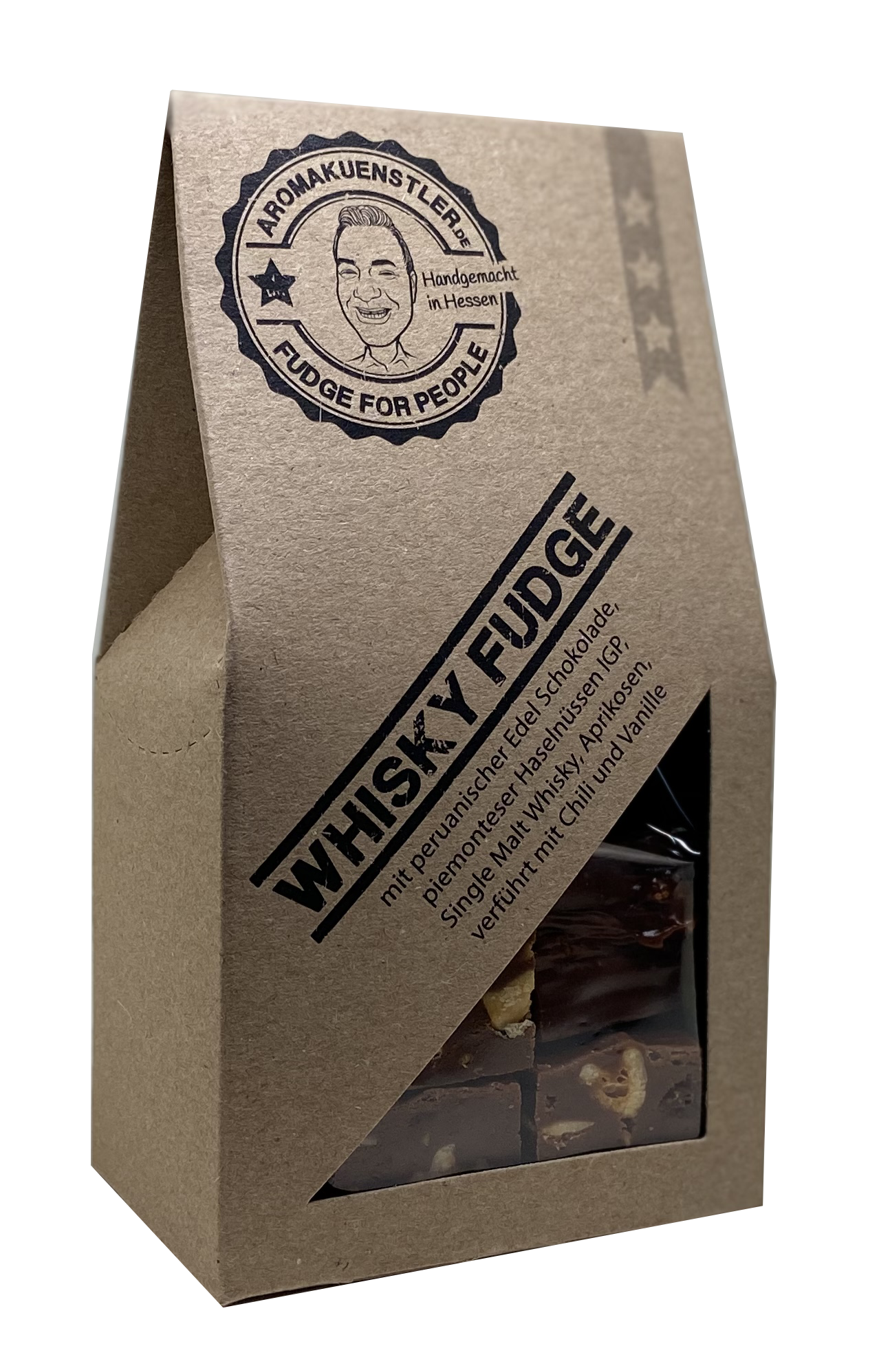 Zutaten: Rohrohrzucker, Sahne, Peru Edelschokolade dunkel (26%) (Rohrohrzucker, Kakaomasse, Kakaobutter). Kakao: mind. 70% in der Schokolade, Glukose, Haselnüsse (15%), Aprikosen getrocknet (14%), Butter, Whisky 2,9%, Vanille (0,01%), Chili (0,3%), Himbeersalz. Enthält Alkohol.