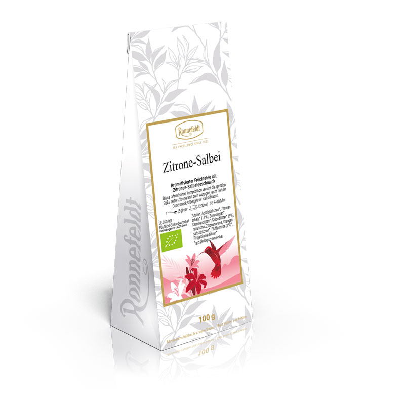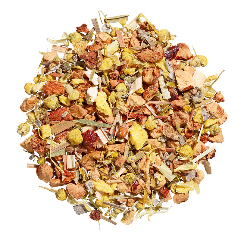 Zutaten: Apfelstückchen**, Zitronenschale** (11%), Zitronengras**, Kamillenblüten**, Salbeiblätter**(8%), natürliches Zitronenaroma, Orangensaftstückchen**, Pfefferminze** (2%), Ringelblumenblüten**