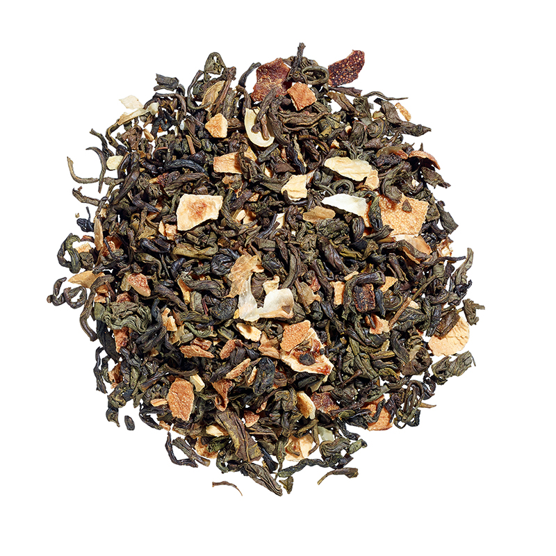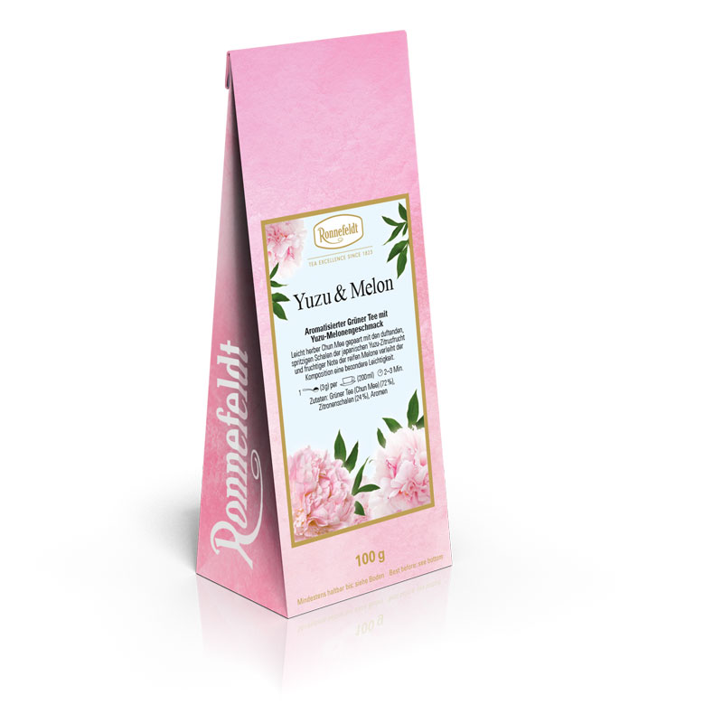 Leicht herber Chun Mee gepaart mit den duftenden, spritzigen Schalen der japanischen Yuzu-Zitrusfrucht und fruchtiger Note der reifen Melone verleiht der Komposition eine besondere Leichtigkeit.