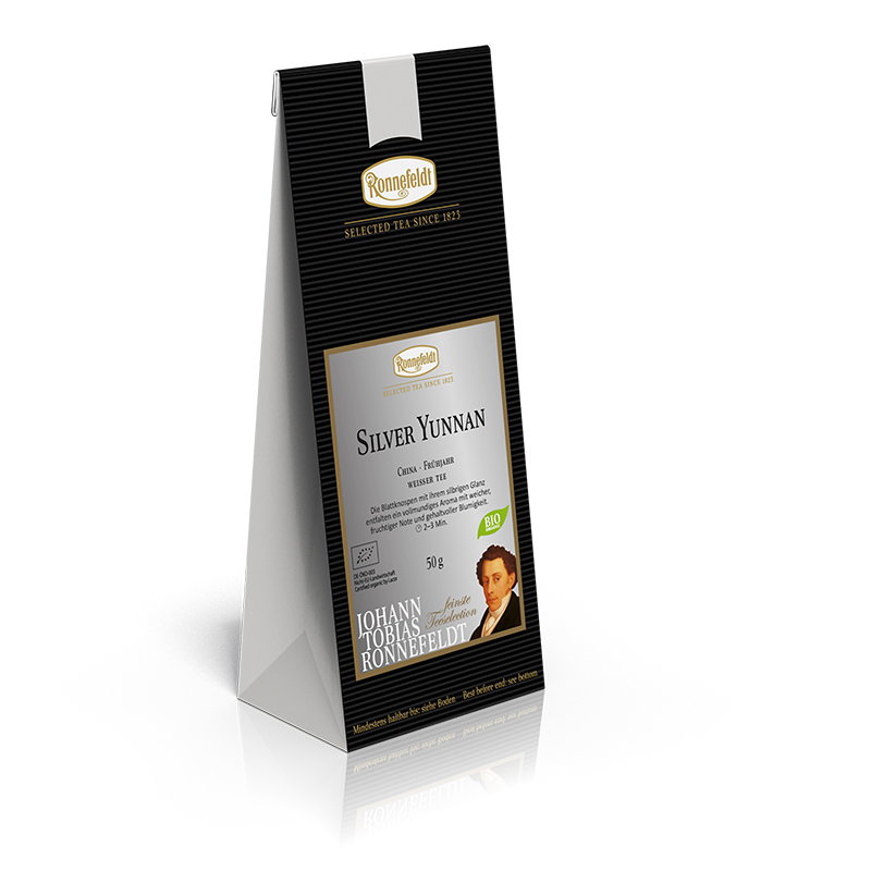 Die Blattknospen mit ihrem silbrigen Glanz entfalten ein vollmundiges Aroma mit weicher, fruchtiger Note und gehaltvoller Blumigkeit.