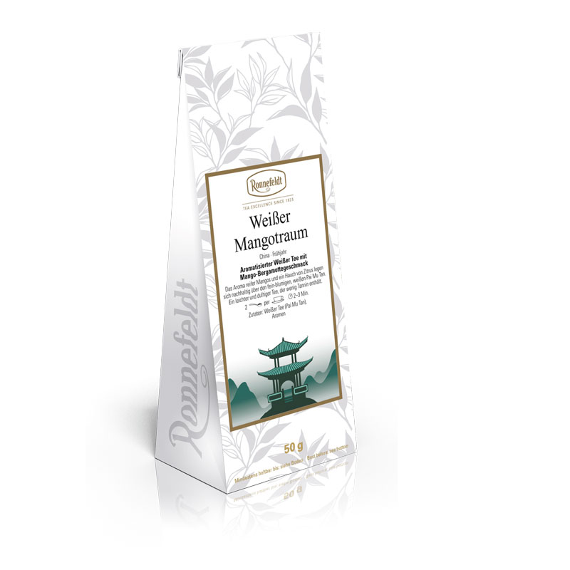Das Aroma reifer Mangos und ein Hauch von Zitrus legen sich nachhaltig über den fein-blumigen, weißen Pai Mu Tan. Ein leichter und duftiger Tee, der wenig Tannin enthält.