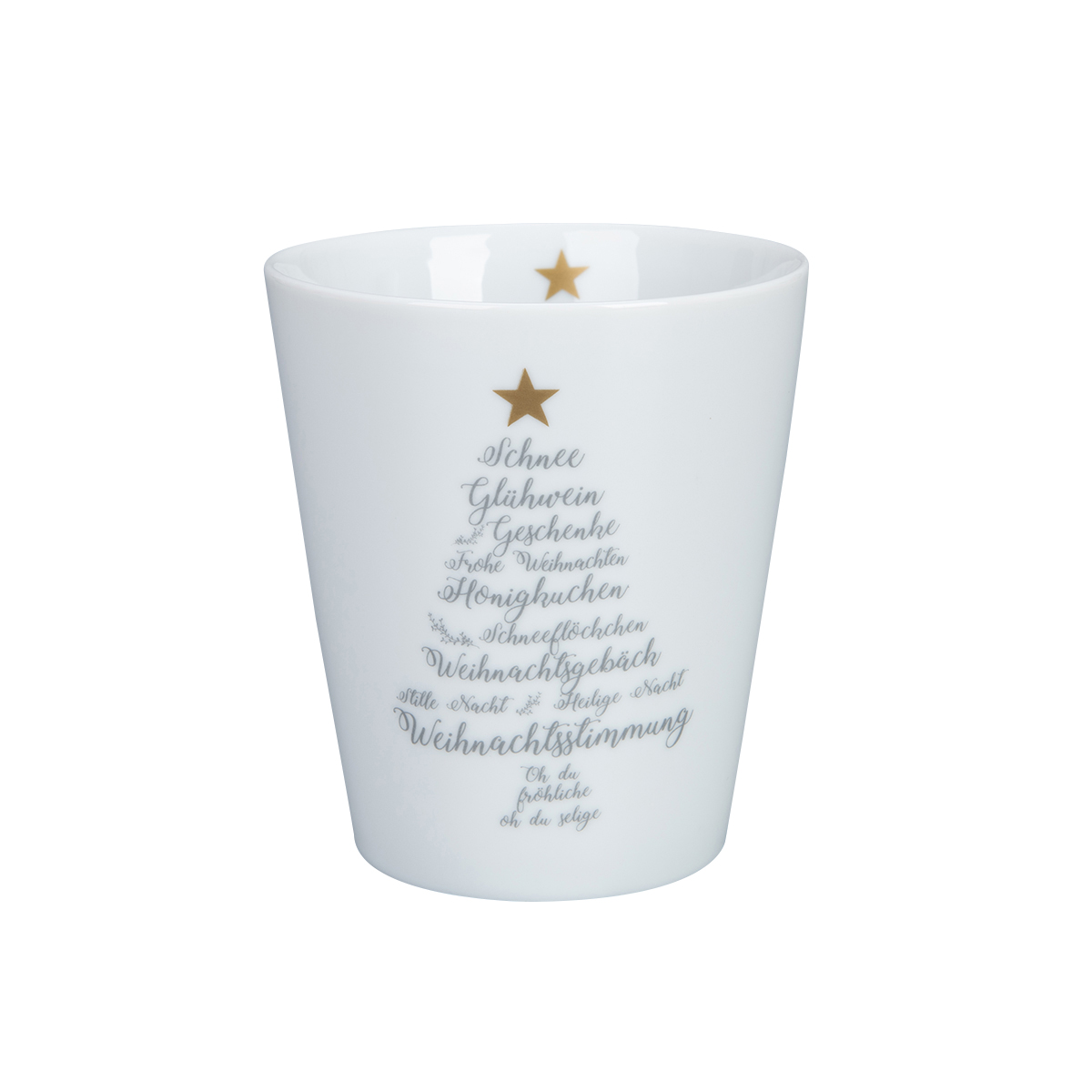 Porzellantasse CHRISTMAS WOLDS mit Innendruck Stern in gold.